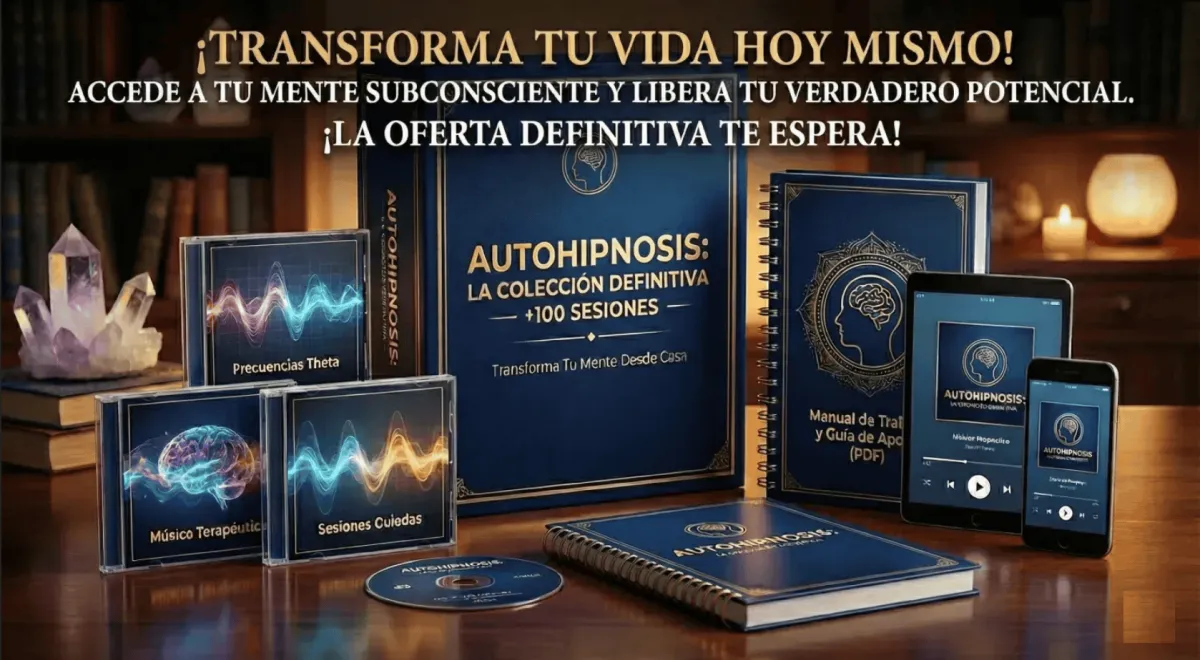 He creado un arsenal de más de 100 audios profesionales de autohipnosis diseñados para una sola cosa: llevarte de la mano al estado Theta y reprogramar tu cerebro mientras tú no haces absolutamente nada.